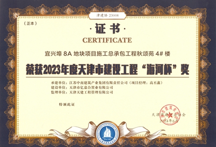 2023年度天津市建設(shè)工程金獎海河杯(宜興埠8A地塊項目4-5#、8-10#)